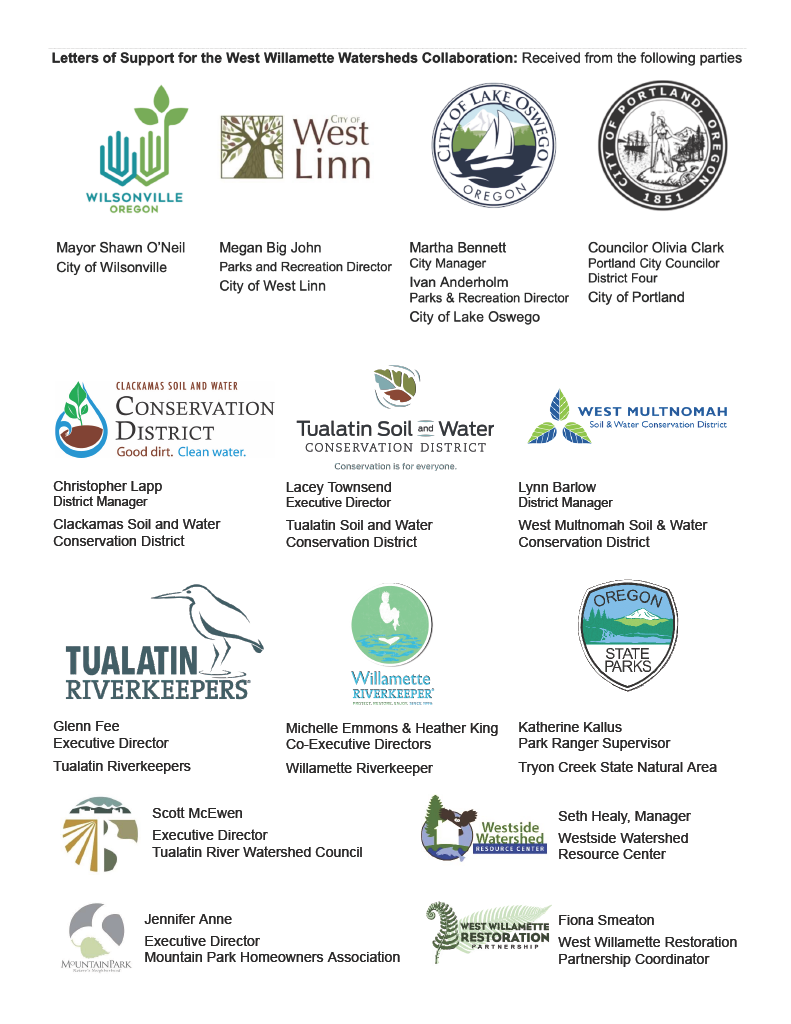 Led by Oswego Lake & Tryon Creek Watershed Councils. Through this work, we will:
